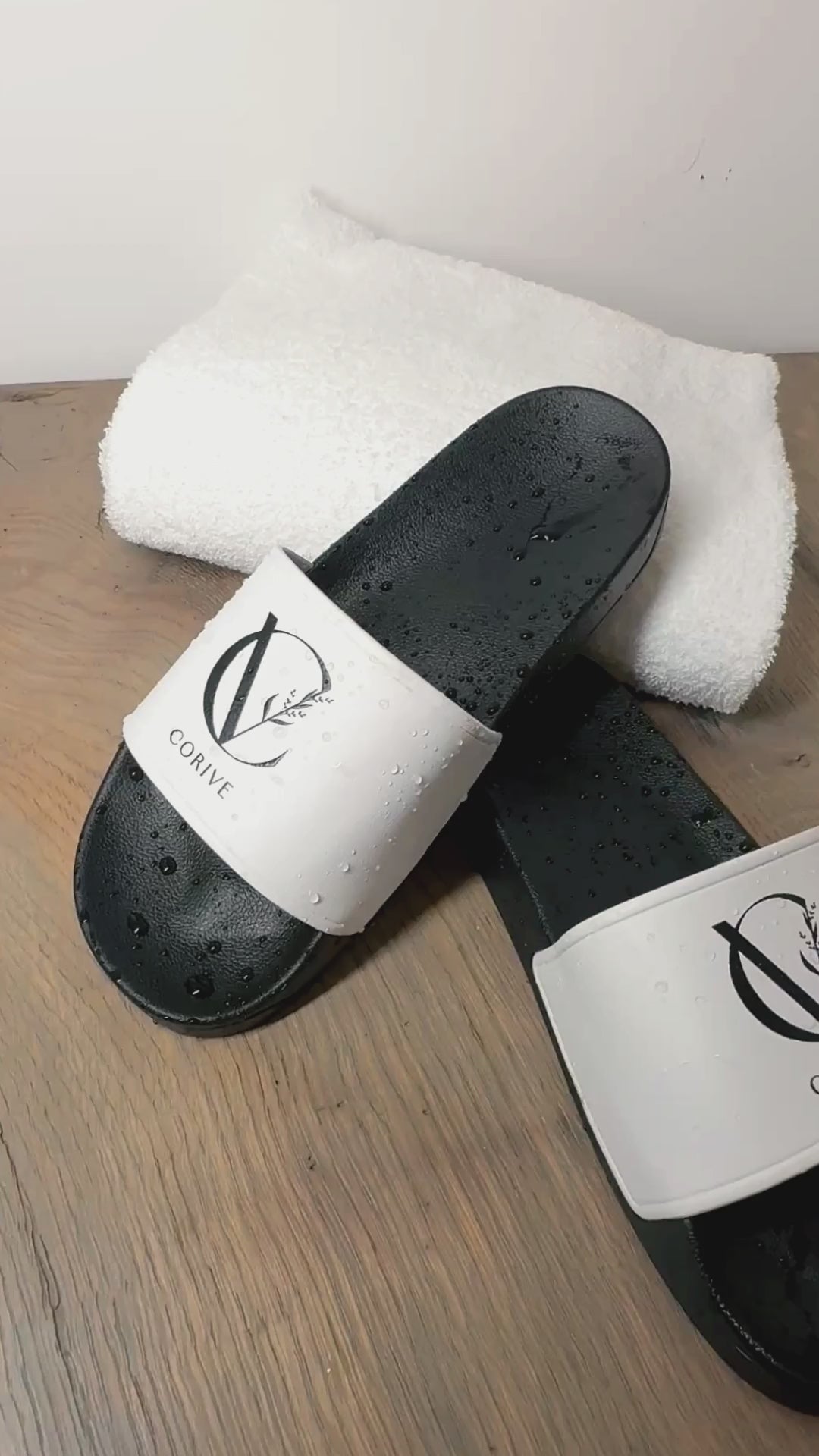 Corive – brillante Eleganz für deine Füße. Die schwarzen Badelatschen mit der weißen Lasche und dem dezenten Corive-Logo verbinden zeitlosen Stil mit einem angenehmen Tragegefühl. Für entspannte Momente und jeden Schritt in die richtige Richtung.